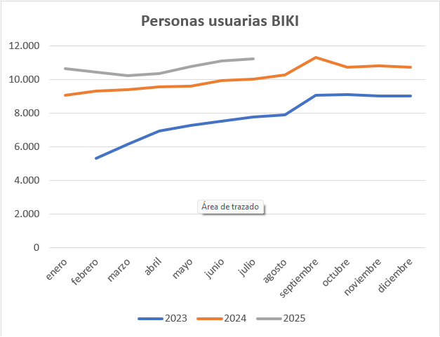 En este periodo de tiempo se ha pasado de 5.331 personas usuarias que se adhirieron a este sistema en febrero de 2023 a las 11.224 en julio de 2025. Con una tendencia creciente, destacando el mes de septiembre de cada año, se ha conseguido duplicar el número de personas que utilizan este medio de transporte alternativo y sostenible, que es utilizado en un 72% por hombres frente al 28% de mujeres.