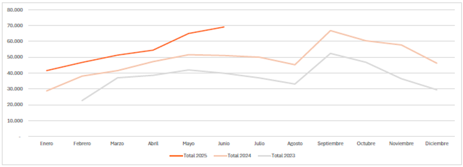 Con 11.085 personas usuarias del sistema, este récord refleja la tendencia positiva que se viene dando en el sistema desde su inicio. Además, el dato más relevante en el mes de junio son los 69.140 usos que se han registrado en el sistema durante todo el mes. Este dato representa el mes con más usos del sistema desde su inauguración el 1 de febrero de 2023.